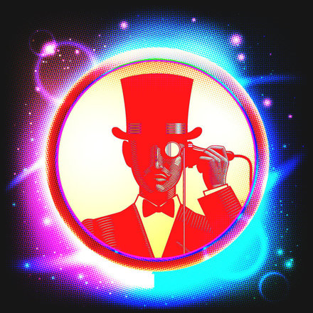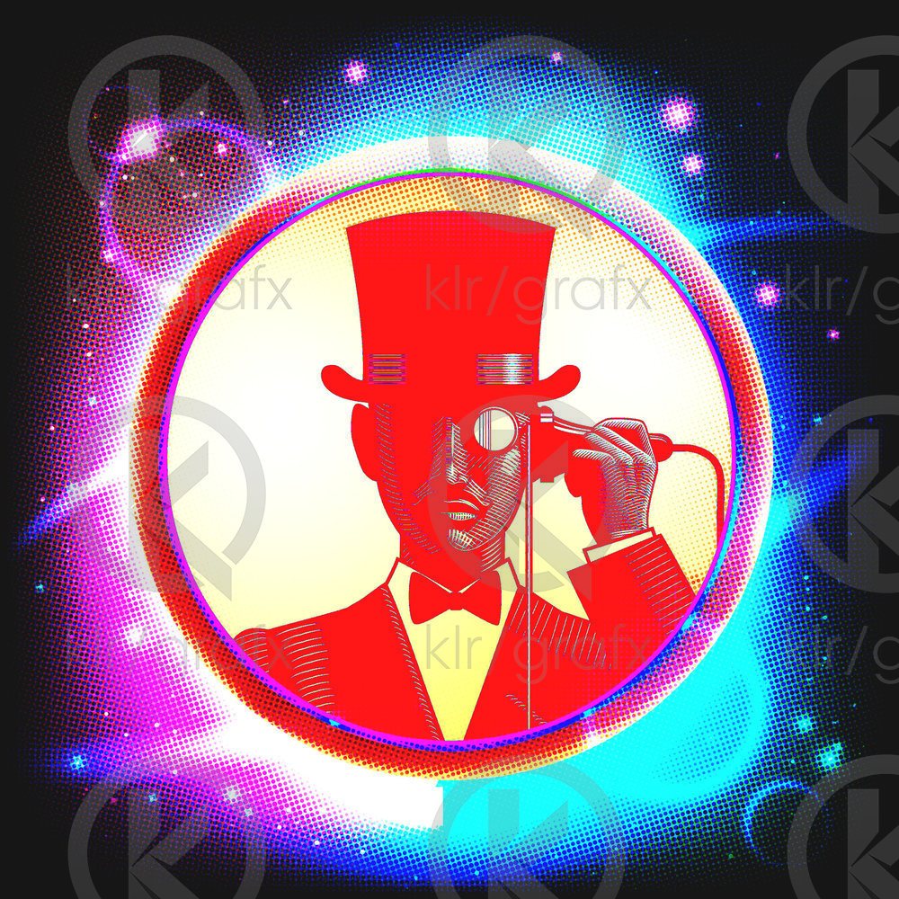 1970s retro rock album cover with neon sign and visual effect lighting. Primary colors are red, cyan, and neon.