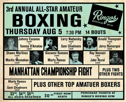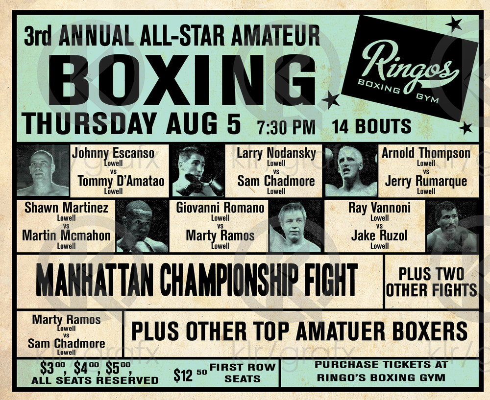 Retro-style boxing event poster featuring bout details. Dominant colors are olive and light green.